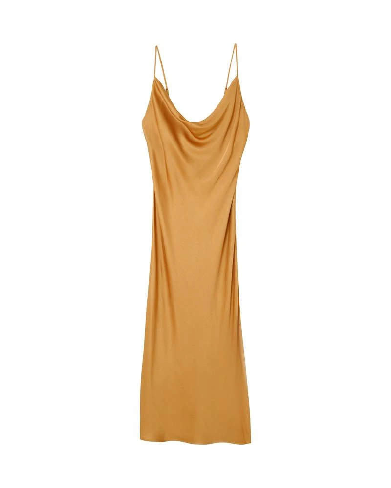 La coupe : DRAPER est une robe satinée midi avec une belle encolure en col bénitier et des bretelles réglables. On adore aussi le détail raffiné de son ouverture boutonnée dans le dos qui rend la silhouette divine.