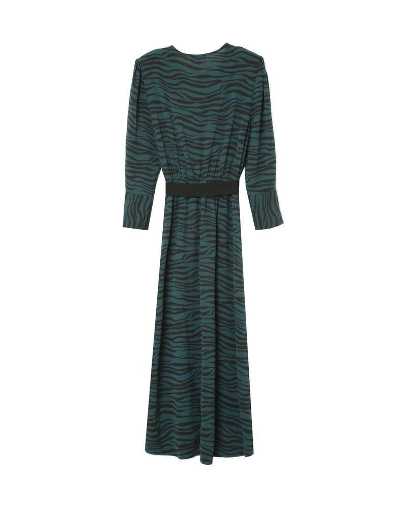 La coupe : DRUSELLA est une robe longue imprimée. Son encolure en V révèle beaucoup de structure grâce à de fines épaulettes. Ses manches longues légèrement bouffantes sont soignées jusque sur les poignets larges. La taille élastiquée est bien dessinée et se marque à notre convenance par une ceinture de tissu contrasté à nouer.