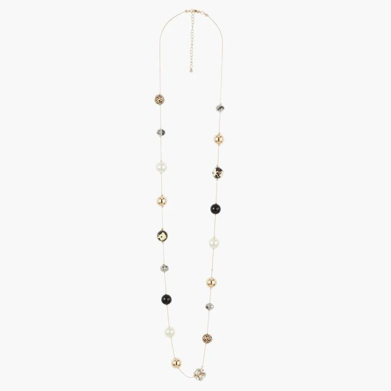Sautoir doré composé de grosses perles fantaisie. Ajustable et fermoir mousqueton.