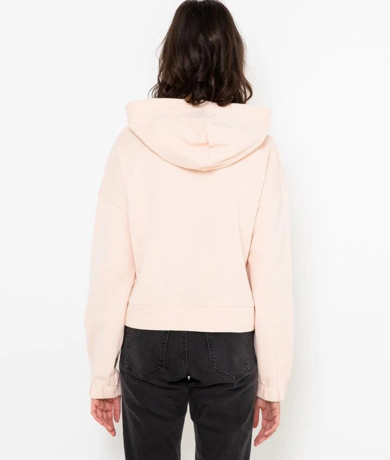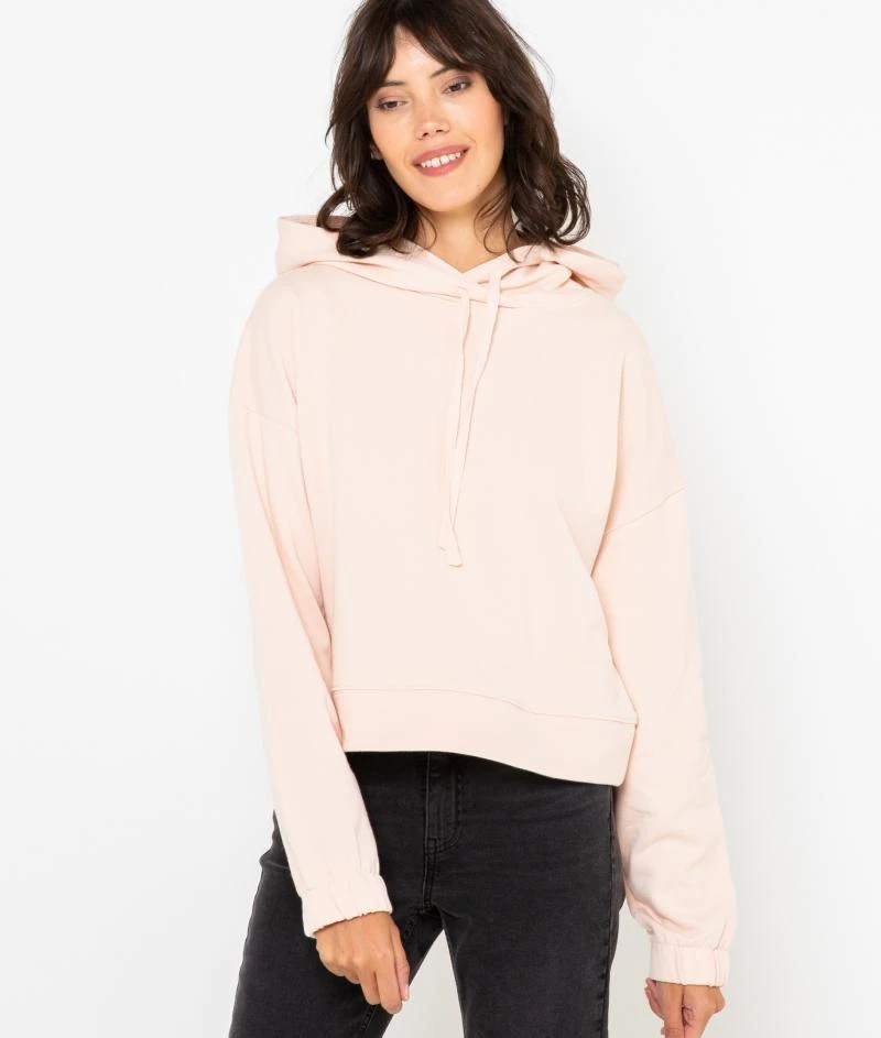 Vente Sweat femme à capuche en coton bio Camaieu – Un sweat femme confectionné en coton bio. Coupe courte et élargie, col croisé avec capuche à cordons, manches longues resserrées. Le mannequin mesure 1.68M et porte une taille M. Ce produit a été fabriqué à partir d’une matière naturelle issue de l’agriculture biologique, respectueuse de l’environnement, qui utilise moins d’eau et aucun pesticide chimique.