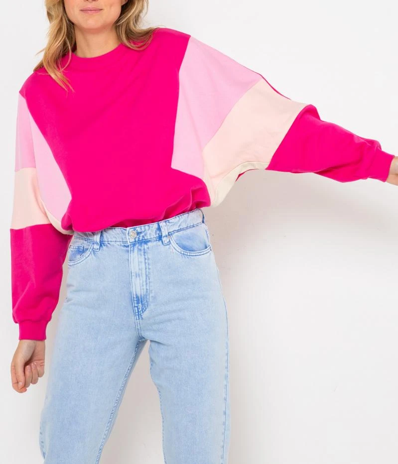 Vente Sweat manches chauve-souris femme Camaieu – Un sweat femme confectionné en coton. Coupe droite, encolure ronde, manches longues chauve-souris, jeu de découpes, bord-côtes. Le mannequin mesure 1.75M et porte une taille M.