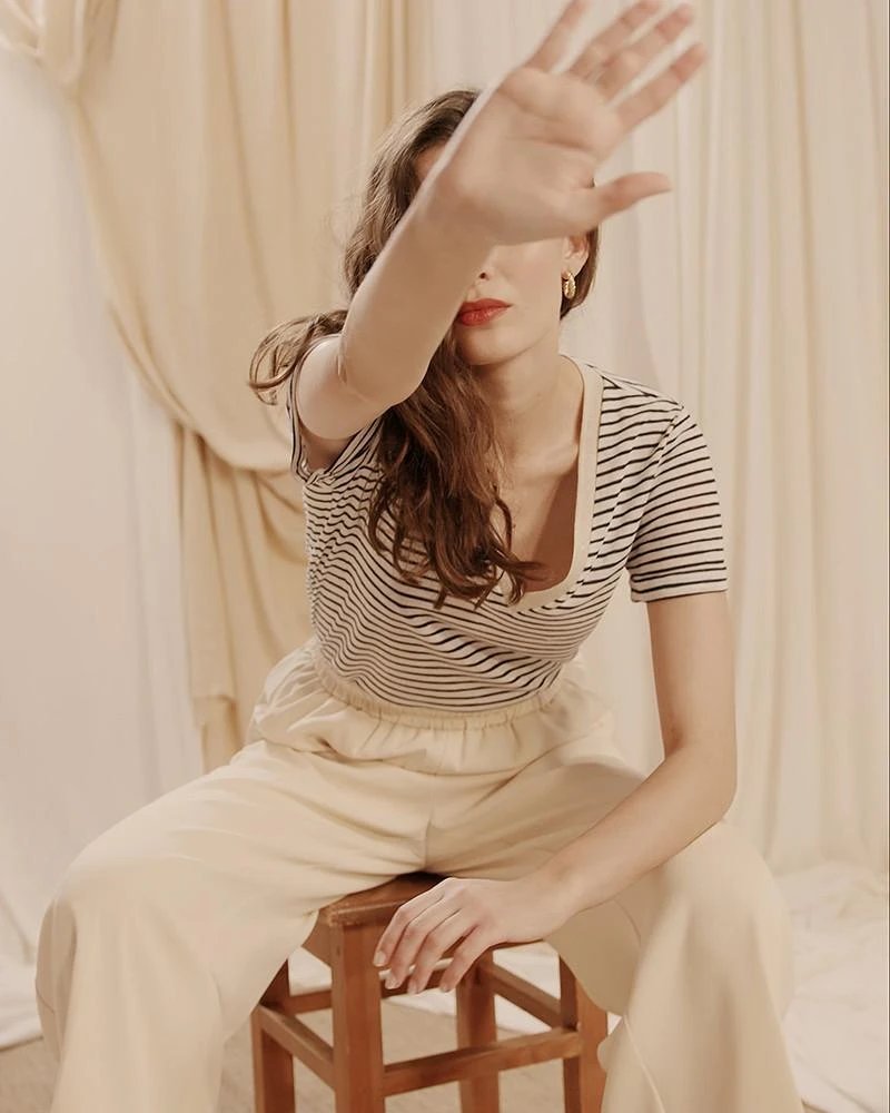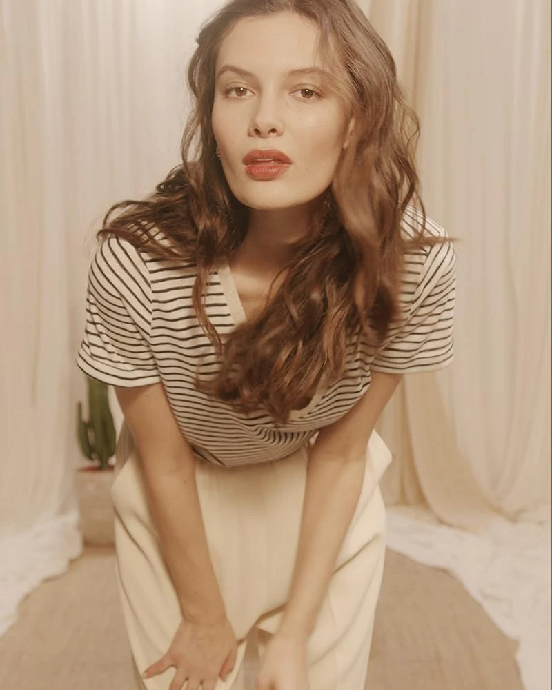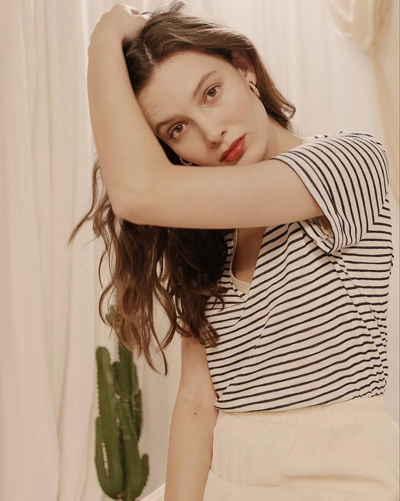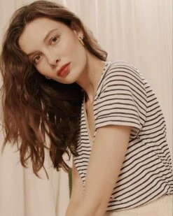La silhouette : En véritable petite marinière du printemps, ce petit tee-shirt aux manches à revers apporte une touche décontractée et boyish à notre allure.