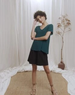 La silhouette : Ce top en viscose et rayonne de la gamme Collective certifié ECOVERO LENZING ( label européen ) est un essentiel de la garde robe Grace & Mila agréable à porter et facile à associer. Une pièce en toute simplicité dont on ne peut plus se passer, qui vient compléter nos looks de tous les jours avec finesse.