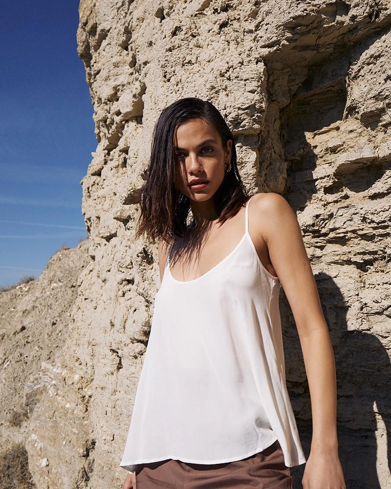 La coupe : CASPAR est un débardeur évasé à bretelles réglables avec une encolure large et arrondie.