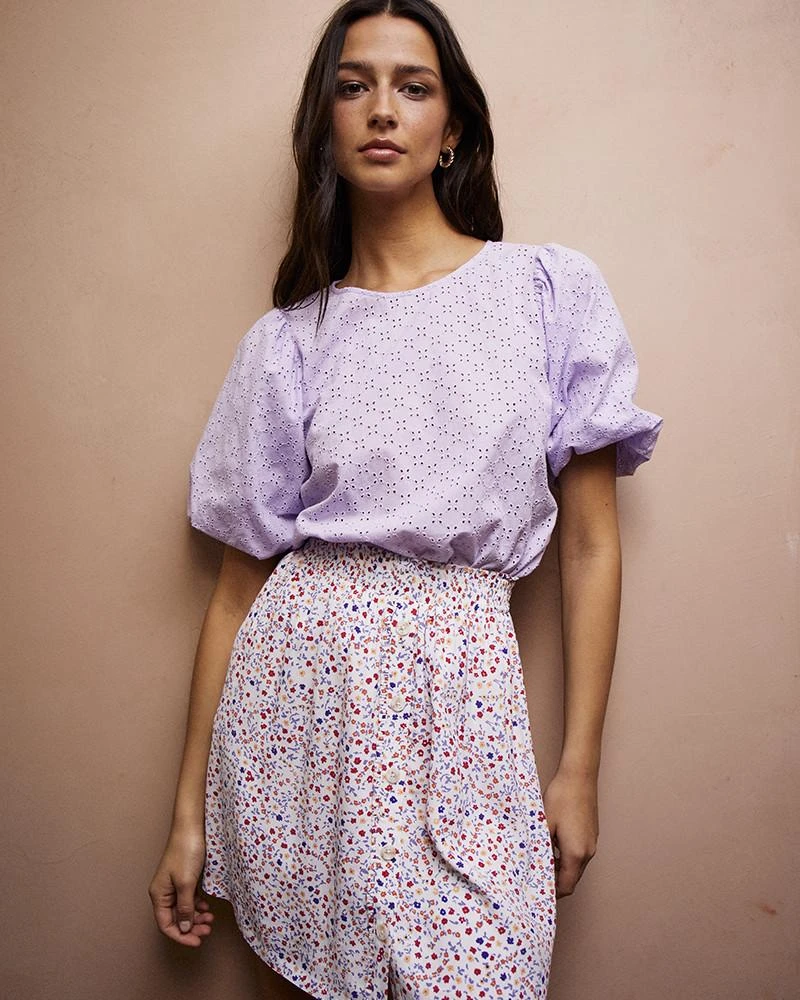 La silhouette : Si vous aimez le style bohème romantique, CLEMENTIN est fait pour vous ! De la broderie anglaise, de jolies manches ballons qui apportent de la structure sur le haut de la silhouette et des coloris pastels gourmands pour un top mode, poétique et carrément rétro !
