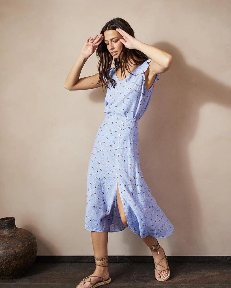 La coupe : COLZA est un top décolleté en V sur le devant et boutonné le long du dos. On craque son imprimé exclusif G&M et le détail des épaules soulignées par de jolis mancherons à volants pour une silhouette bohème et romantique.