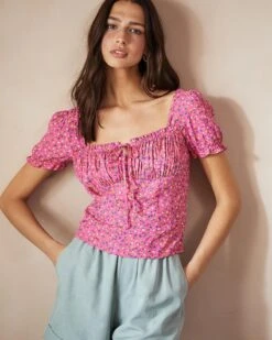 La coupe : CONRAD est un top en imprimé exclusif G&M avec un décolleté en cœur et un corsage froncé sur le devant.
