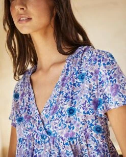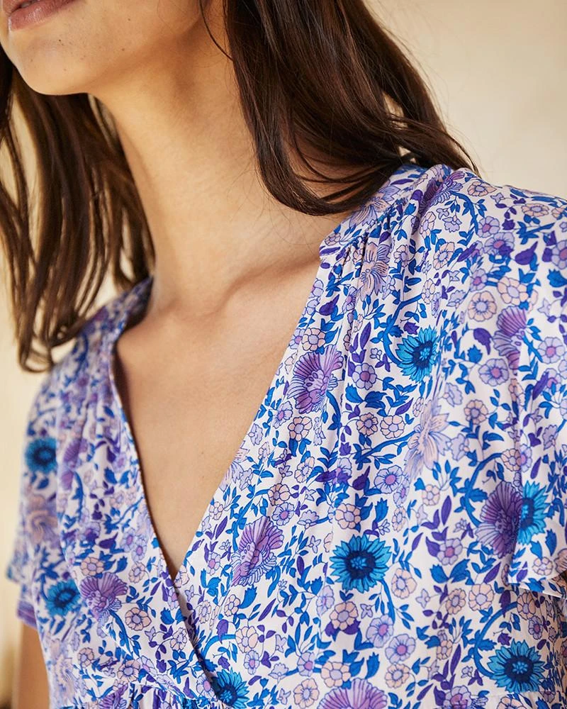 La silhouette : Ce top 100% viscose est un de nos indispensables de la saison douce. Un imprimé doux et apaisant qui nous rappelle les jardins en fleurs des beaux jours, une coupe ample, agréable et un tombé ravissant qui adoucit la silhouette.