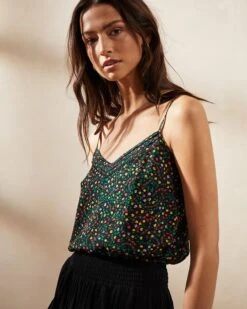 La silhouette : Ce joli petit top fleuri est un essentiel de la garde robe Grace & Mila. On aime le décliner chaque saison au gré de nos inspirations. Le voici en toute légèreté dans un tissu viscose-rayonne, avec un col en V qui dévoile subtilement le décolleté. Ses bretelles sont fines et ultra délicates. Son imprimé est pétillant et respire l’euphorie des jours heureux. Une valeur sûre !