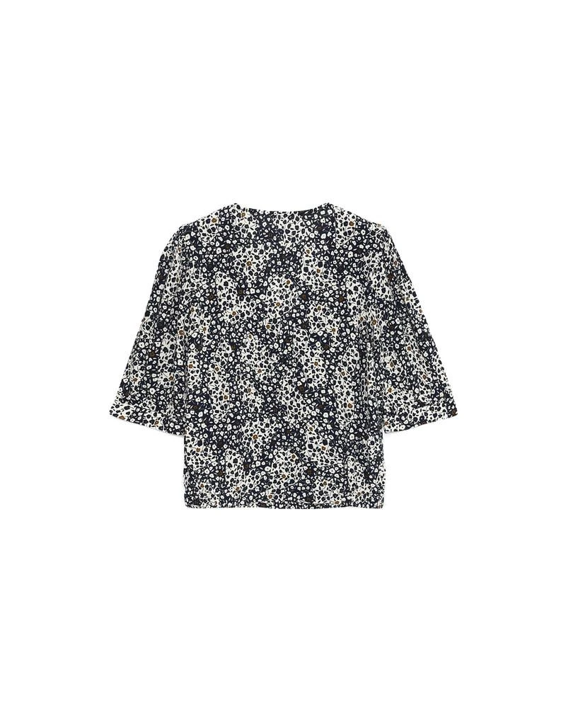 La coupe : DANILO est une blouse imprimée à manches courtes froncées avec une encolure en V, des détails plissés sur le devant et une patte de boutonnage.