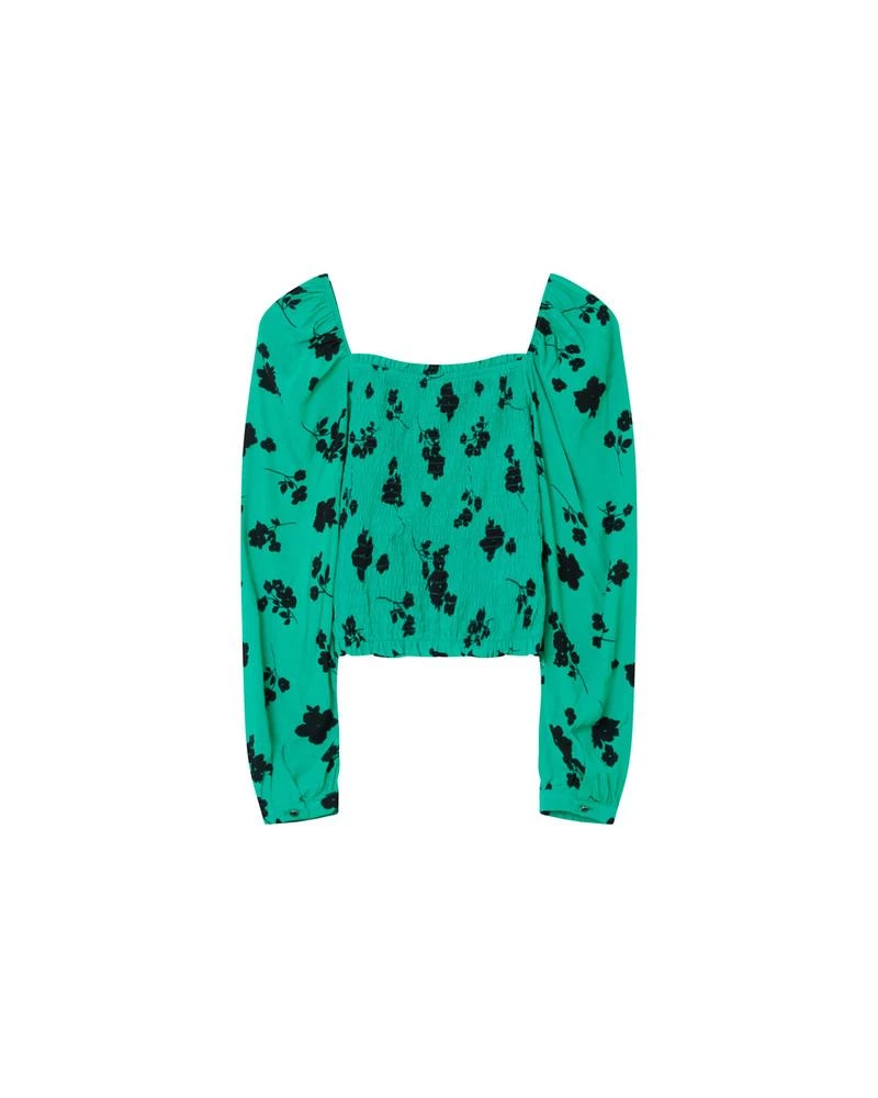 « La coupe : DOREMI est un top court en imprimé exclusif G&M. Ses manches longues légèrement ballons sont froncées sur les épaules et s’achèvent par un jeu de volants timides sur les poignets.