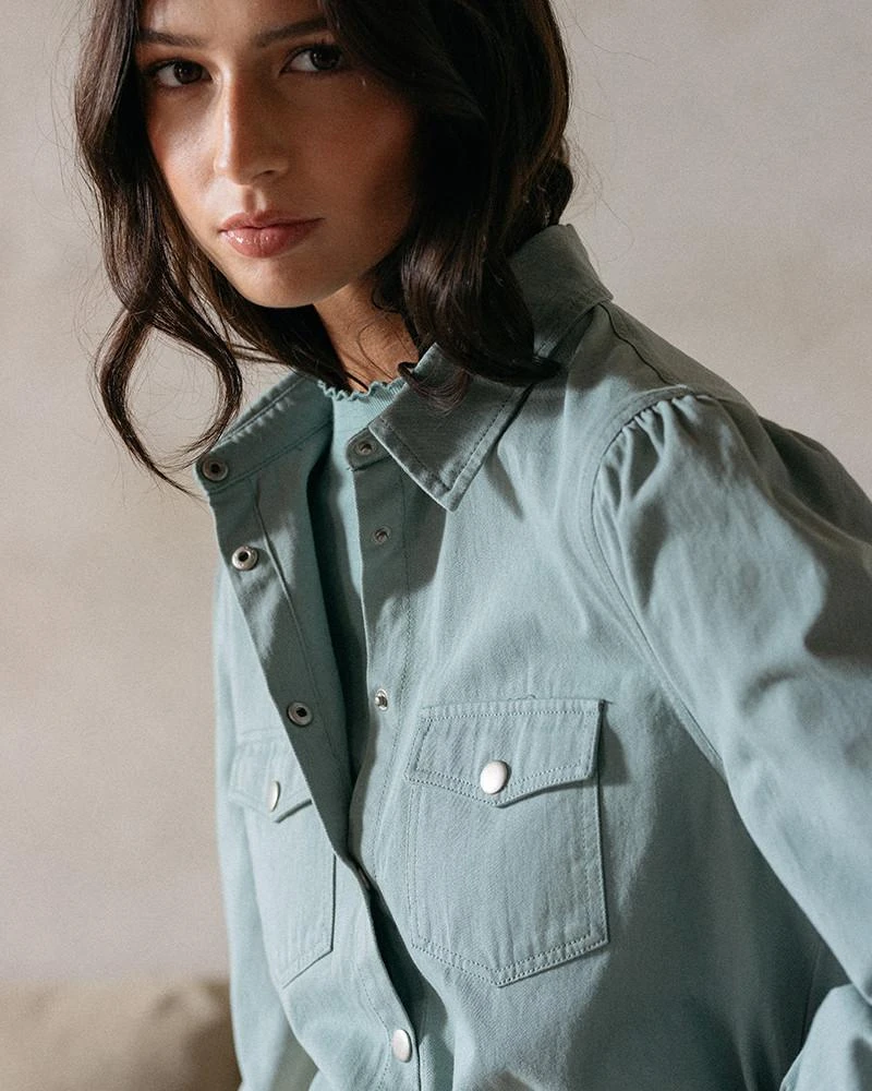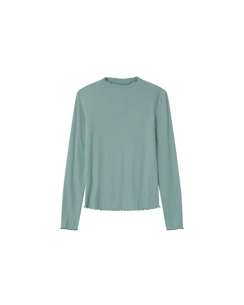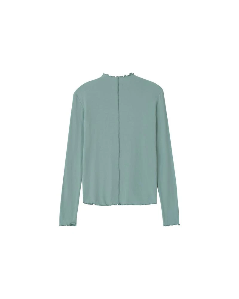 « La coupe : DUBLIN est un top avec un petit col haut à ondulations en bordure. Griffé G&M sur l’ourlet avant gauche, il rejoint notre gamme de basiques essentiels « »Un Brin de vert » ».