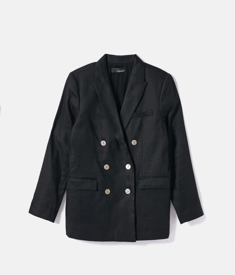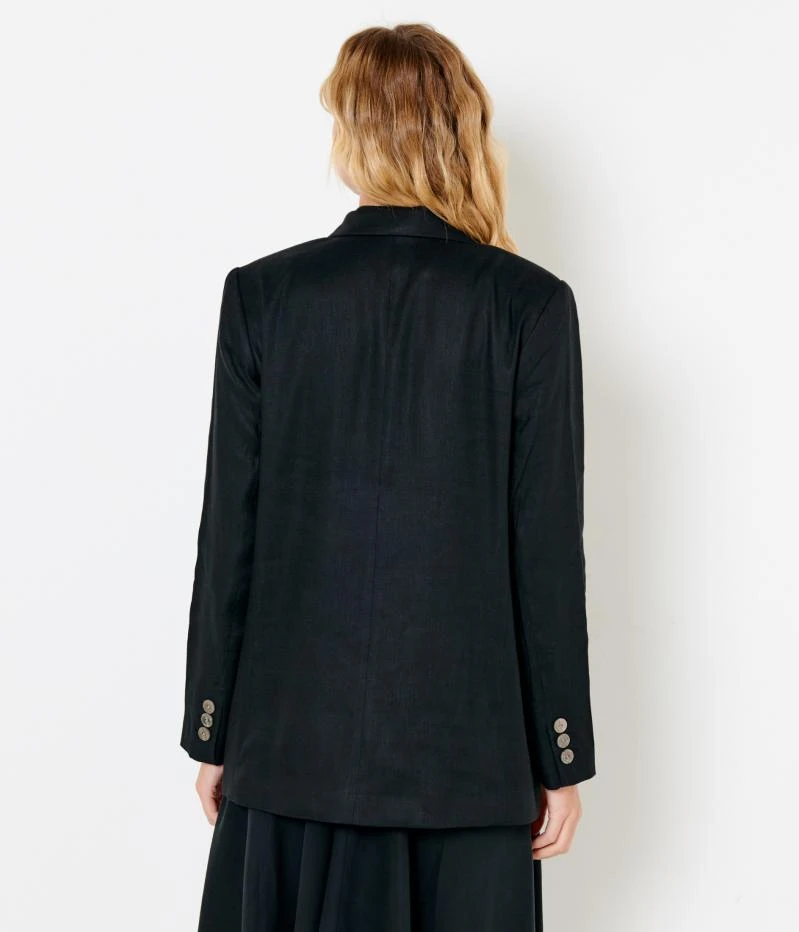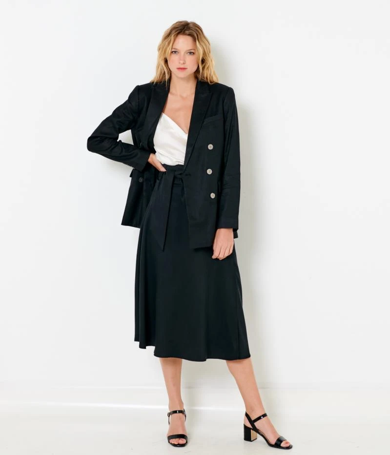 Vente Veste blazer double boutonnage femme Camaieu – Une veste de blazer femme confectionnée en toile de viscose. Coupe rallongée, col tailleur, fermeture double boutonnage, poche passepoil poitrine, poches à rabats. Le mannequin mesure 1.75M et porte une taille 38.