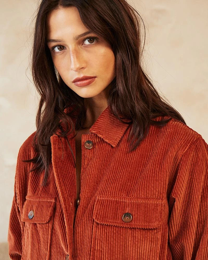 La coupe : DAY est une veste en velours côtelé à manches longues avec deux poches plaquées et une patte de boutonnage sur le devant.