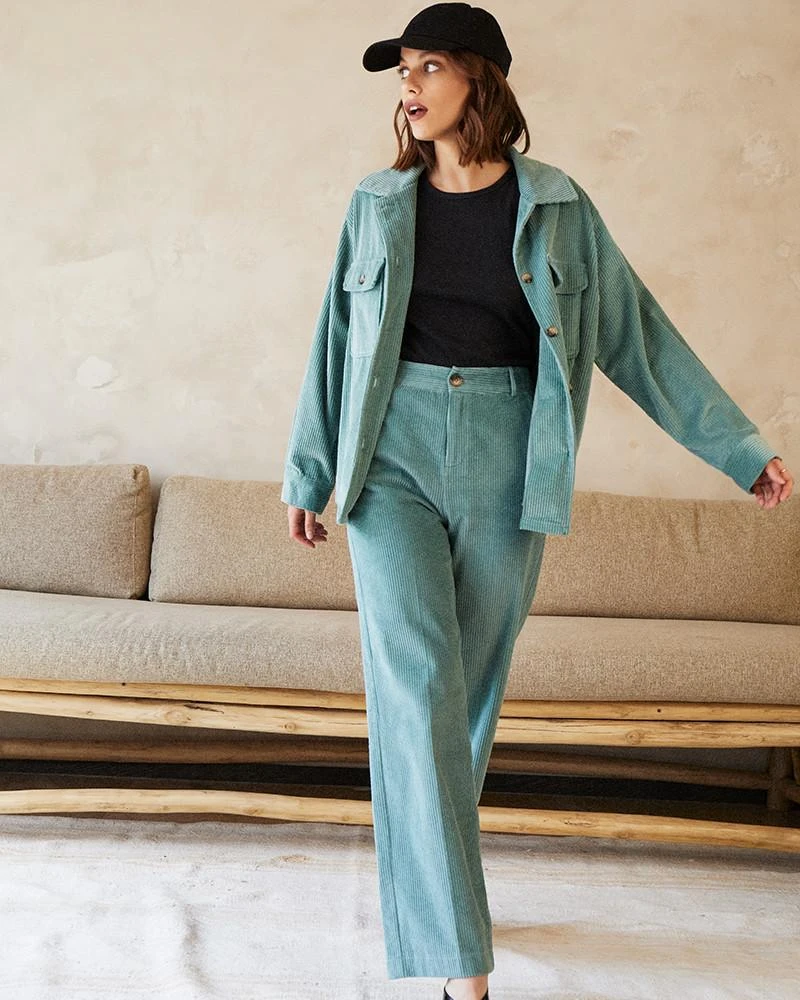 On aime le porter avec : Une chemise imprimée en dessous et le pantalon en velours côtelé assorti avec une paire de mocassins pour un look mode et citadin.
