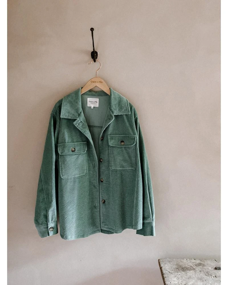 La coupe : DAY est une veste en velours côtelé à manches longues avec deux poches plaquées et une patte de boutonnage sur le devant.