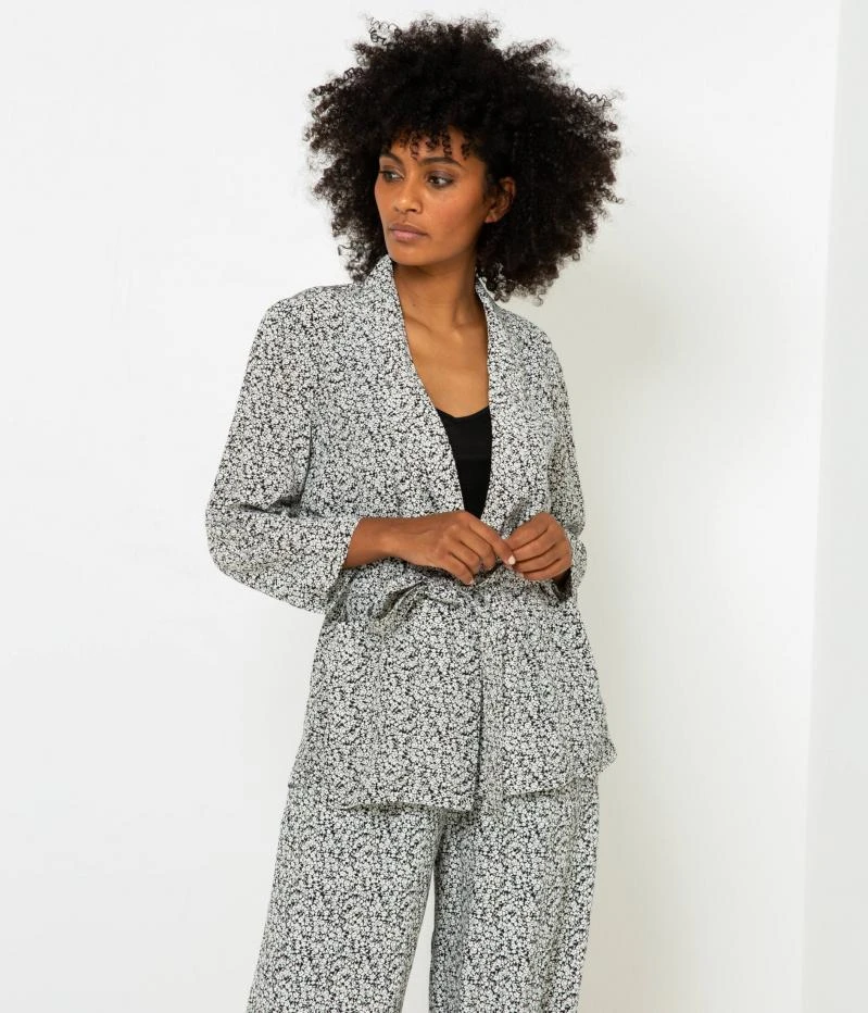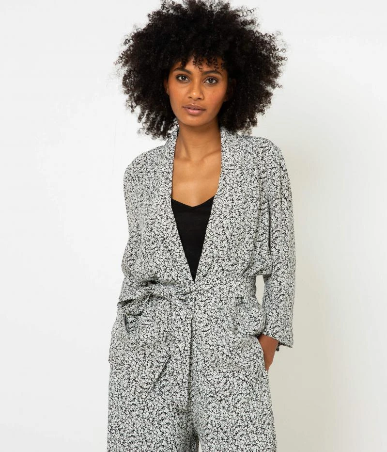 Vente Veste kimono fleurie femme Camaieu – Une veste légère femme confectionnée en viscose. Coupe rallongée, col châle et fermeture ceinture à nouer pour un esprit kimono. Imprimé fleuri en all-over, poches plaquées. Le mannequin mesure 1.75M et porte une taille M.