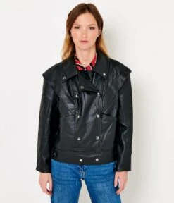 Veste Biker Femme Faux Cuir Noir | Manteaux,Doudounes Camaieu Femme